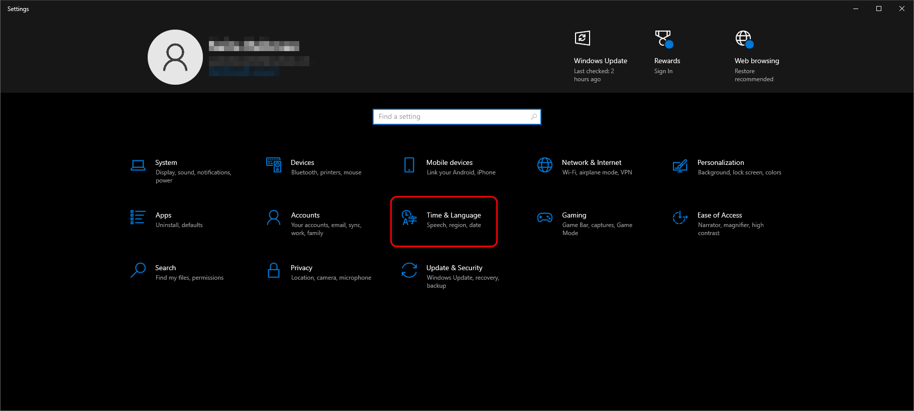 - Navigate to Time & Language.
