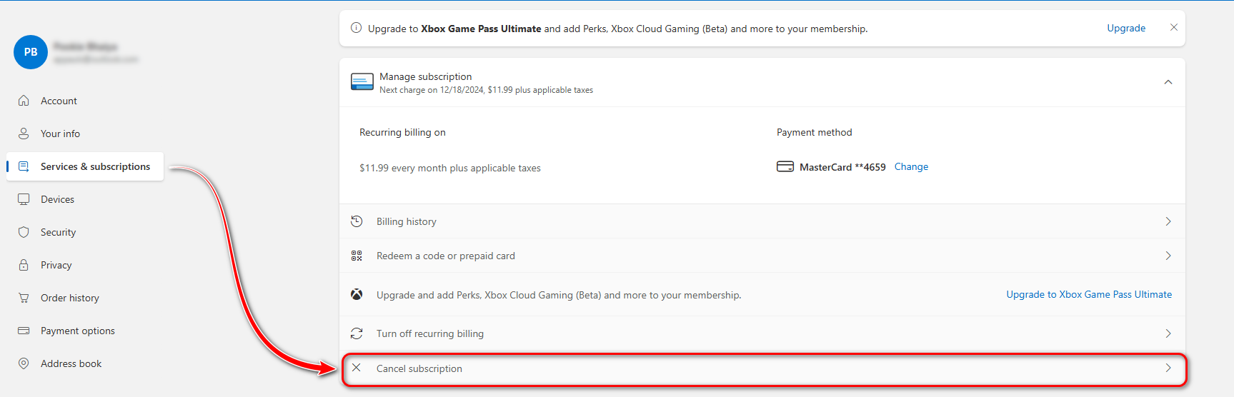 - First, we need to cancel the subscription by clicking on the Services & Subscriptions > Manage.