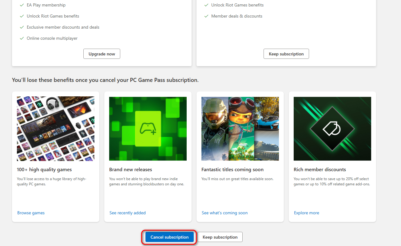 - Scroll down and click again on Cancel Subscription.