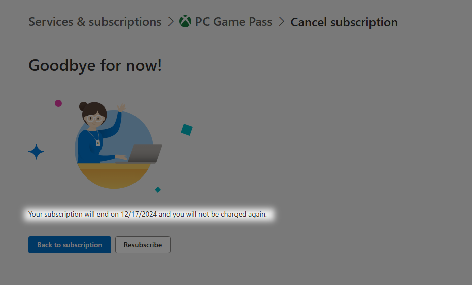 - Now “Your subscription will end on (date mentioned),” and you will not be charged again.