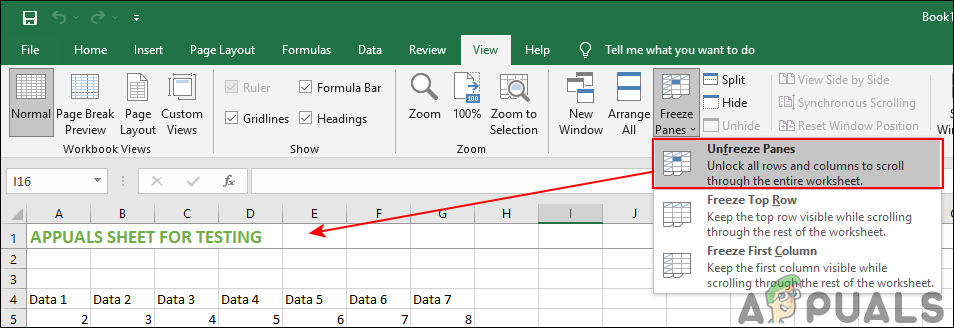 - To unfreeze rows and columns, simply click on Freeze Panes again and then choose the Unfreeze Panes option.