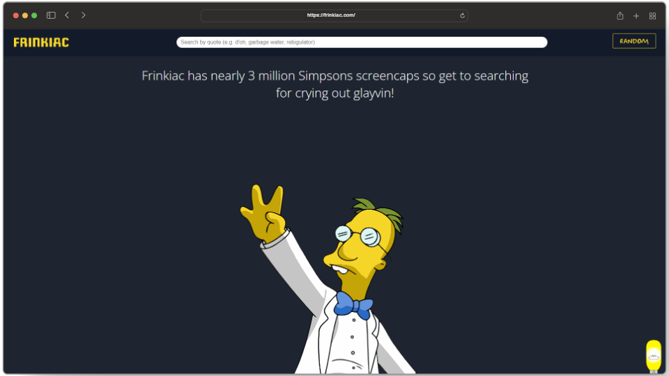 Overall, Frinkiac is a perfect tool for anyone who wants to fulfill their Simpsons cravings by accessing millions of screenshots and quotes from the show. Whether you are looking for a specific moment or want to create something of your own, Frinkiac has everything you need.