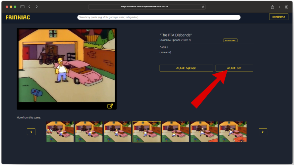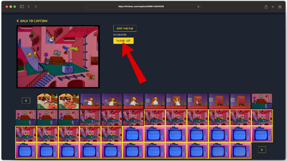 Frinkiac also allows users to make their own animated GIFs of up to nine seconds. You can even find your old GIF creations by simply typing in their URLs.