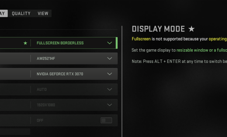 Optimizing MW2/Warzone 2 - With that done, launch the game to see if you can use Fullscreen Exclusive mode.