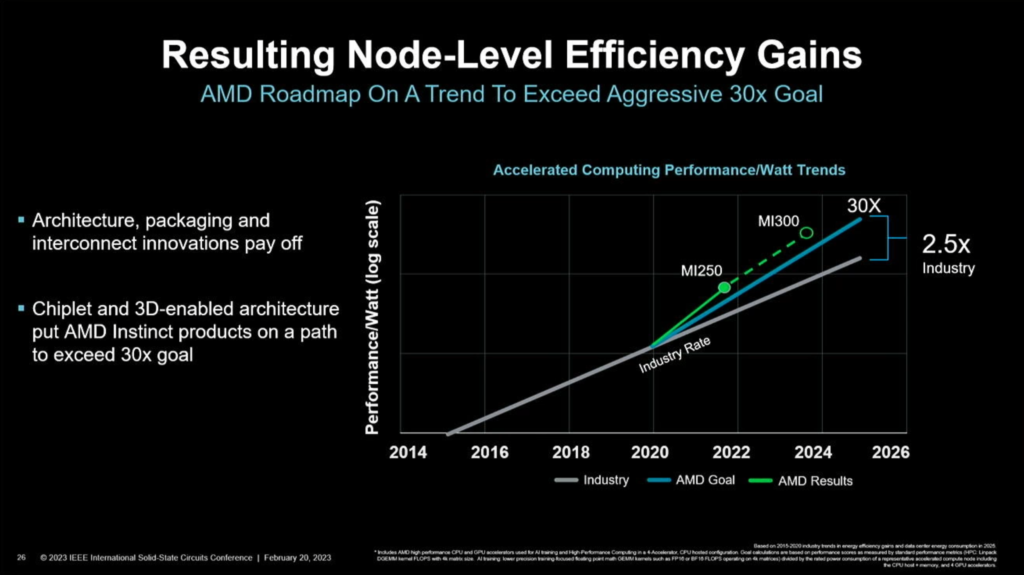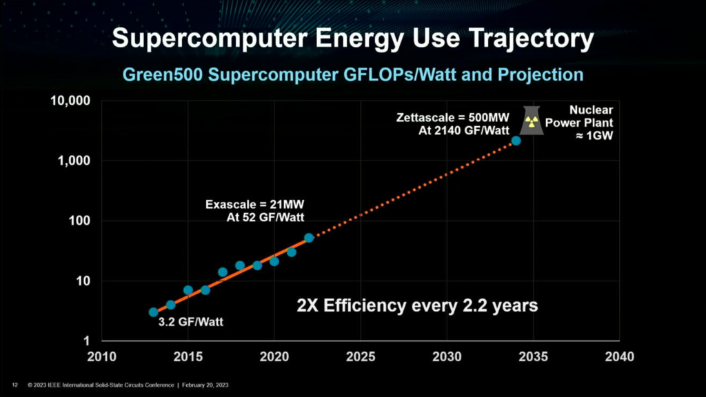 A Chiplet-powered 3D packaging approach will enable to surpass the industry’s best by a factor of 2.5x. All thanks to the efficiency offered by 3D technology. An optimized node, a faster architecture and the 3D chiplet approach may require just 100MW of power to attain 1 ZettaFLOP of performance.