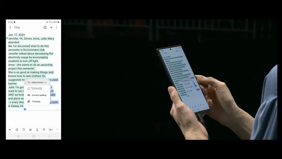In Samsung Notes, Galaxy AI streamlines note organization with an easy and quick summarization function. You can take a picture of your notes, turning them from physical into textual format. Once this is done, you can choose to “Auto-format,” which will separate different types of headings from the paragraphs.