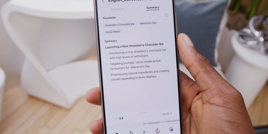 Transcript Assist, a part of Galaxy AI, has the ability to discern voices and take notes from a voice recording. This means that it can not only recognize voices better but also translate the recording into textual format and then into any other language available on the device using Speech-to-Text.