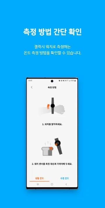 Even measuring a hot pan is depicted with instructions to first remove the smartwatch and then hold it close to the cooking surface. One of the app pictures, however, shows that you may safely dip your hand into certain surfaces, such as a pool while wearing the Galaxy Watch.