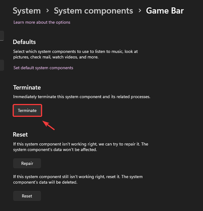 - Click Terminate to close all instances of the Game Bar.