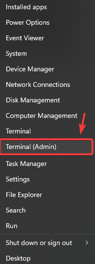 - Right-click the Start Menu and select Terminal (Admin) from the options.