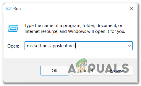 - Now you need to press the Windows key + R to open a Run dialog box, then type ‘ms-settings:appsfeatures’ inside the search bar and press Enter to open the Apps & features.