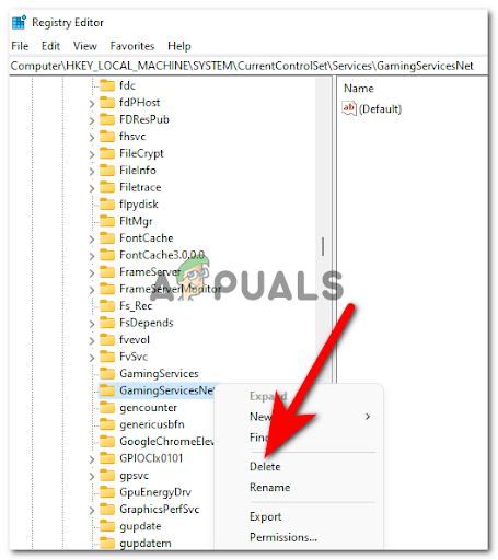 If the method above didn’t produce the results you were after, you can also try getting rid of the potentially corrupted Gaming Services infrastructure via Registry Editor – only attempt this if the Powershell method above has failed.