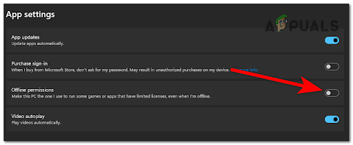 Another reason why you might experience this issue is when GamePass is not permitted to launch games while your PC is not connected to the internet. In order to be able to do this, the app needs offline permissions.