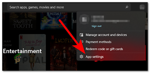- Open the Microsoft Store and click on your profile, then access the App settings.