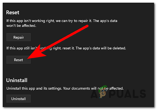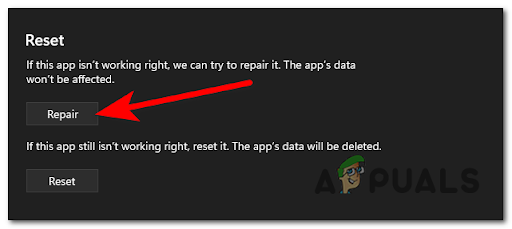 You can do this by accessing the Apps & Features menu and triggering a Repair procedure from the Reset tab. This method was confirmed to work by both Windows 10 and Windows 11 users.