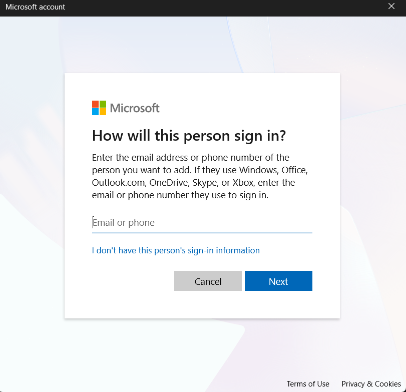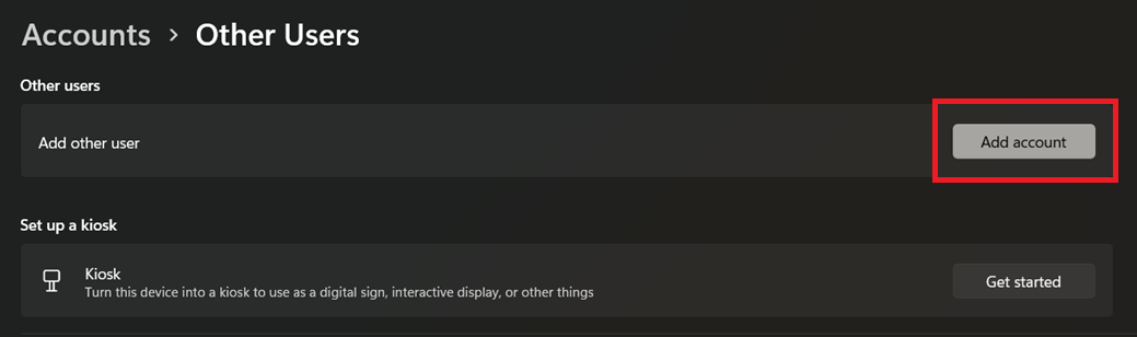 - Enter the sign-in details for another account, or create a new local account if needed.