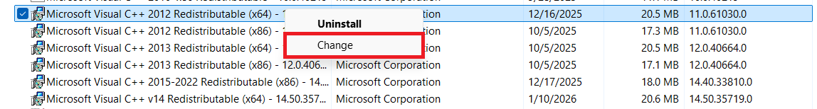 Repairing the Microsoft Visual C++ Redistributables can help because Helldivers 2 and related startup components rely on Microsoft runtime libraries to launch correctly. If those runtime files are missing or damaged, the game or GameGuard may fail during initialization.