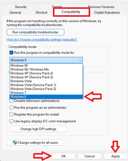 Setting compatibility mode to Windows 8 is not a primary fix, but it has helped some users when GameGuard failed due to a startup compatibility issue on their current Windows installation. Since anti-cheat software can behave unpredictably with compatibility settings, this should be treated as a later workaround rather than an early fix.