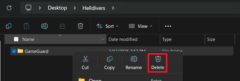 Deleting the existing GameGuard folder forces Helldivers 2 to download a fresh copy. Adding the game folder to your antivirus or firewall exclusions can also prevent future interference.