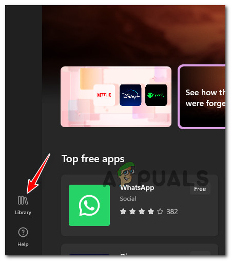 - Once inside the Microsoft Store component, click on Library from the screen’s bottom-left corner.