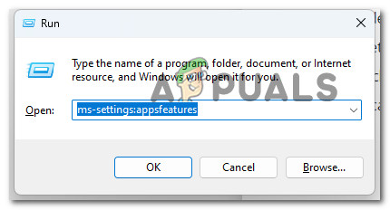 - To enter the Apps & features menu, use the Windows key + R to bring up the Run dialog box, then type “ms-settings:appsfeatures” in the box that appears.
