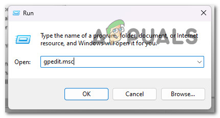 - Next, type ‘gepedit.msc’ inside the text box, then press Ctrl + Shift + Enter to open up the Local Group Policy Editor.