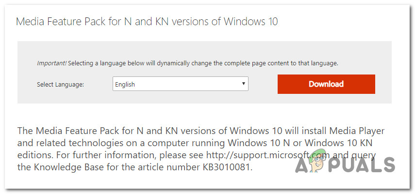 - Missing Windows Media Pack – If you’re on N or KN versions of Windows 10 or 11, there’s a big chance you’re experiencing this problem because you’re missing the Windows Media pack dependency. Fortunately, you can fix this issue quickly by manually installing the Windows Media pack.