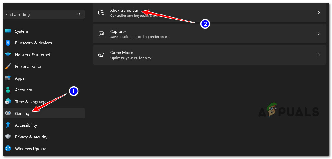 - Once you’re finally inside the Settings menu, click on the Gaming tab from the vertical menu on the left.