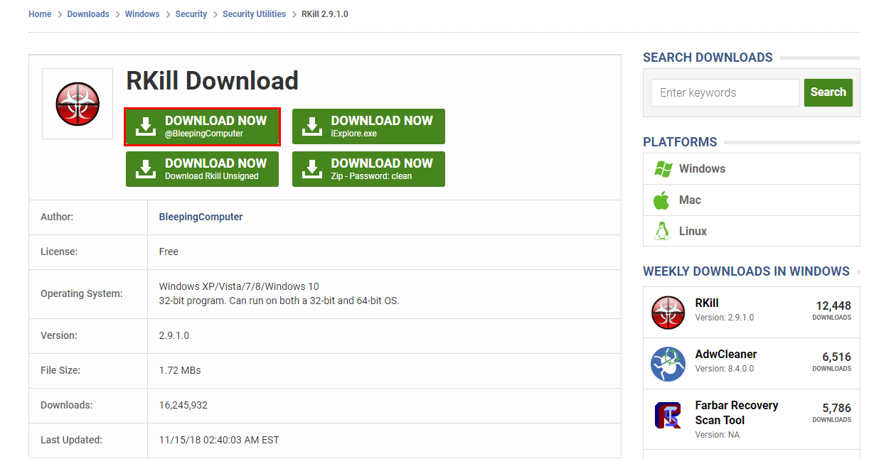 - Double-click on the RKill executable file to run it. If prompted, click Yes or Run.