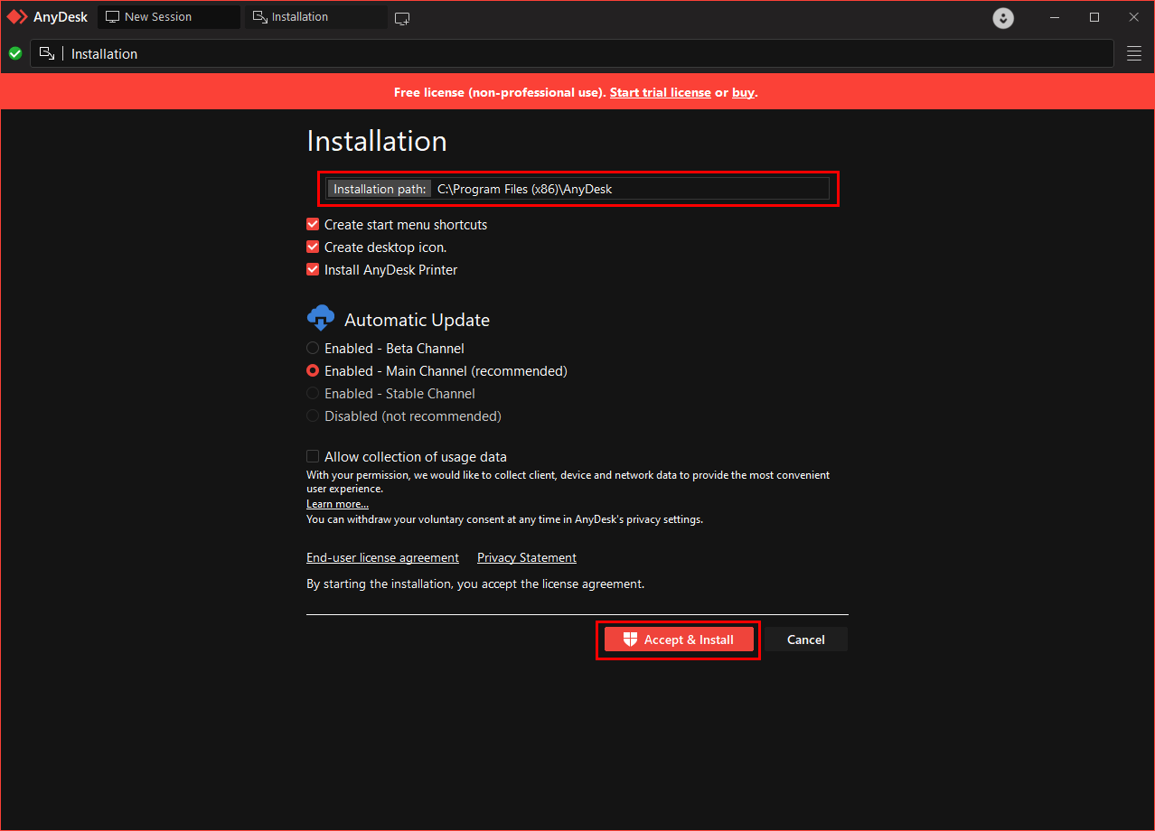 - Run the AnyDesk installer (.exe file) by double-clicking it to initiate the installation process.