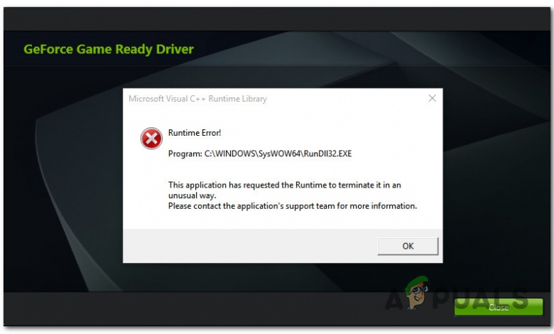 Some Windows users are encountering the ‘C++ Runtime Error‘ whenever they attempt to install or launch Nvidia GeForce Experience conventionally. In most cases, this problem is reported to occur when users attempt to install a GeForce Game Ready driver using the GeForce Experience interface.