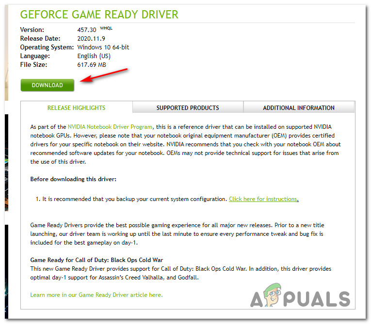 This method has confirmed to be successful by a lot of uses that were previously incapable of updating their Nvidia drivers to the latest version. Affected users are speculating that the manual approach is effective because it doesn’t rely on Nvidia Experience to fetch the required files (it downloads them locally)