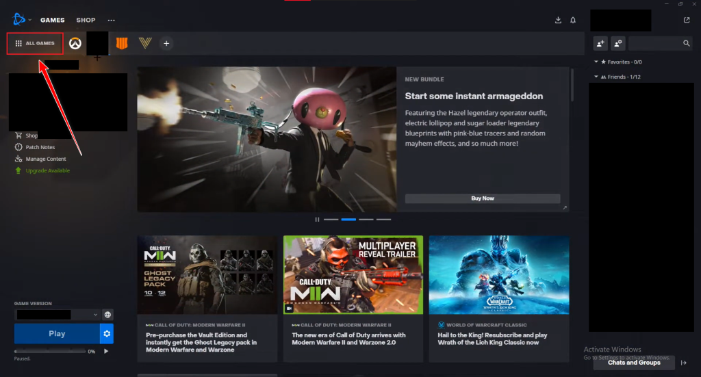 - Select the All Games option from the top-left side of the screen.