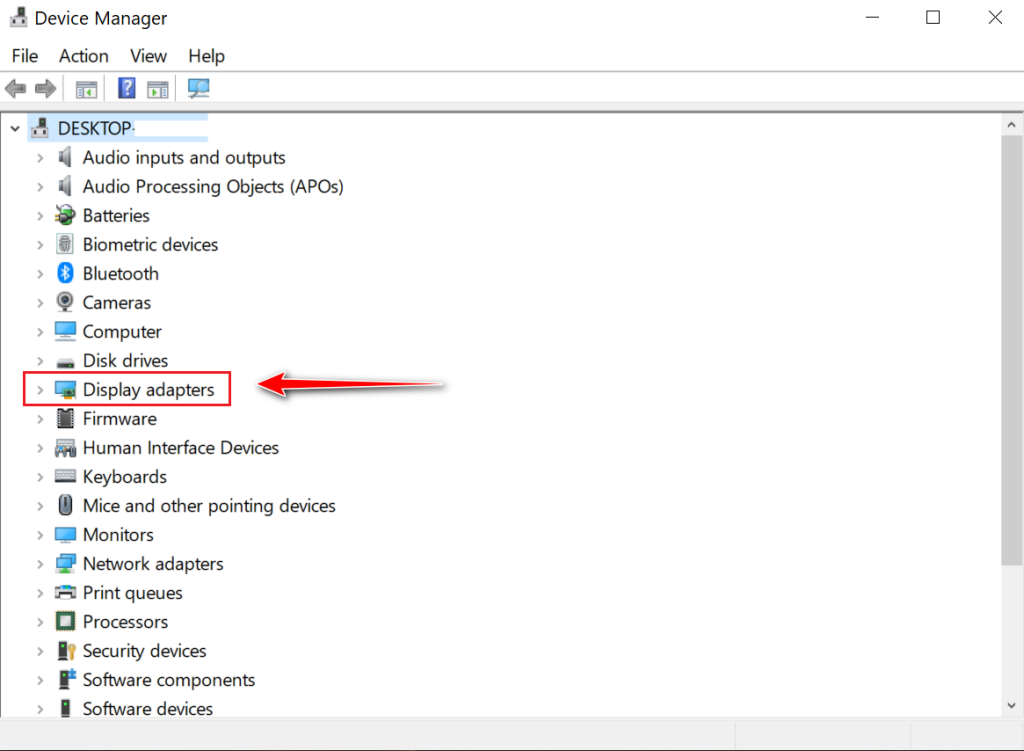 - Click on the drop-down menu next to Display adapters