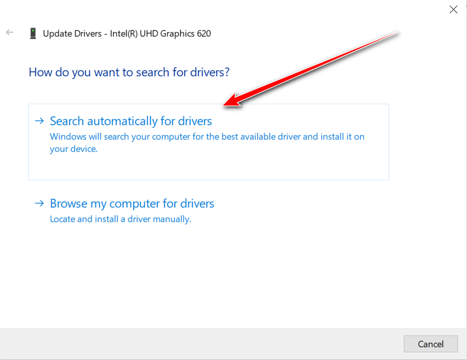 - Choose the Search automatically for drivers option.