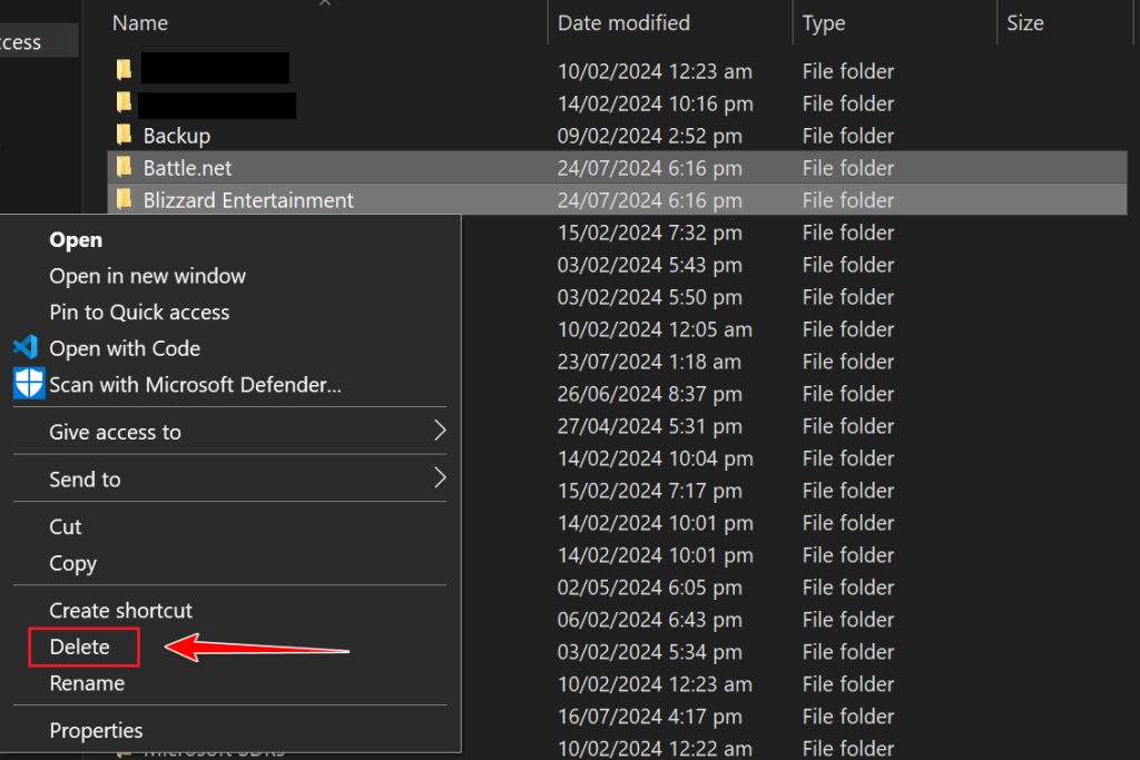 - Locate the folders named “Battle.net” and “Blizzard Entertainment”.