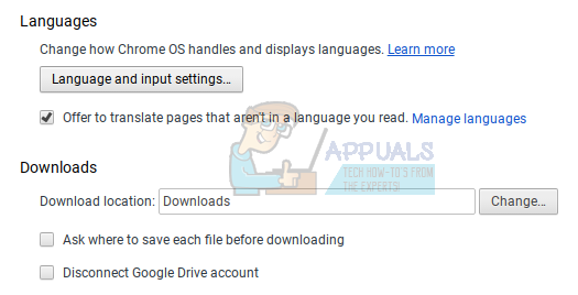 - Scroll down to the bottom of the Settings window and click on ‘Show advanced settings’. After advanced settings are displayed, scroll down to the bottom of the page. There, you will find Languages as a heading.