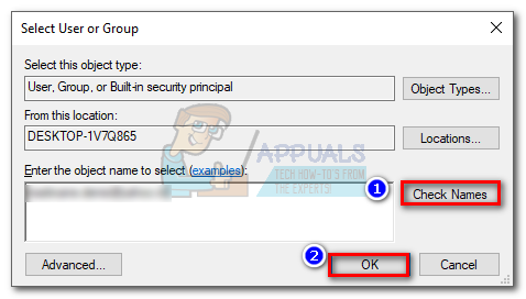 - In the box under Enter the object name to select, type in your Windows username. If you’re using a Microsoft account, type in the email associated with it. Click the Check Names button, then hit Ok to close this window, then hit Apply to close the Advanced Security Settings for HelpPane.exe window.