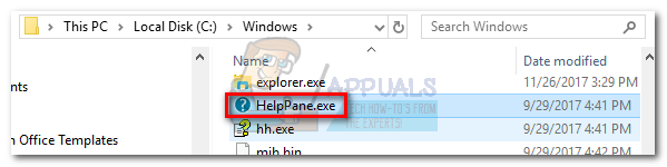 - Then, right-click on HelpPane.exe and rename it to something else. When prompted to provide administrator privileges, hit Yes to confirm.