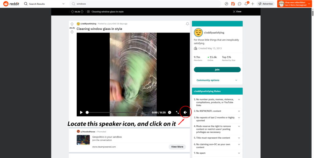 Like mentioned earlier, all videos on Reddit are muted by default, and start auto-playing when you scroll to them. To listen to the audio: