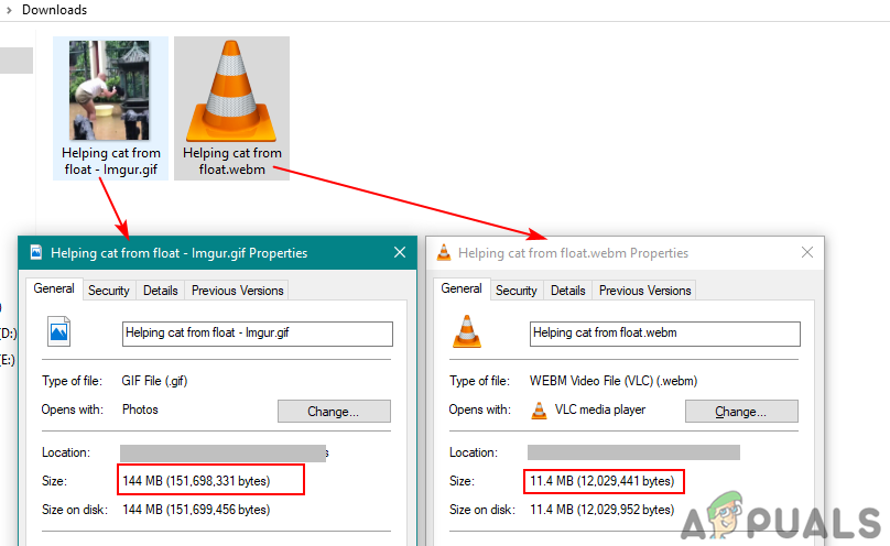 Most of the time if you open a GIFV on the Internet and try to save it, it will be in the WebM or MP4 format. As mentioned above GIFV is just the project name for GIFs in the video formats on the Imgur website. Downloading the GIFV in a GIF format rather than the video format will be downloaded as a large file. As you can see the size difference below, we downloaded the 24seconds video in both GIF and WebM format from Imgur.
