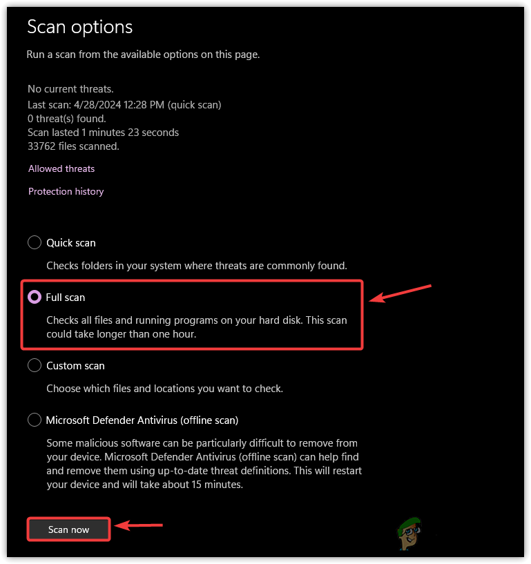 We will use Windows Defender Scanner for demonstration, but you can use any reliable third-party antivirus software.