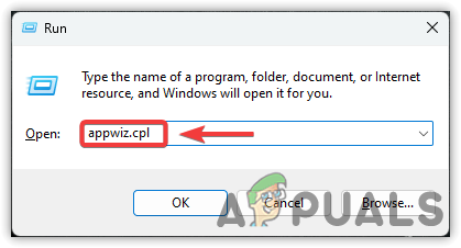 - Type appwiz.cpl and click OK to open the Programs and Features in the control panel.