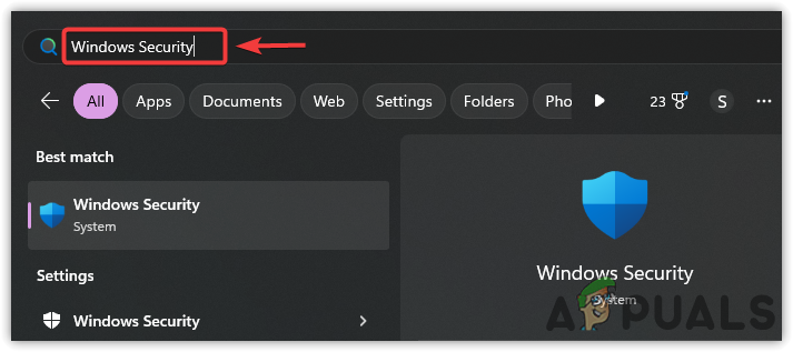 - Click the Start Menu and type Windows Security.