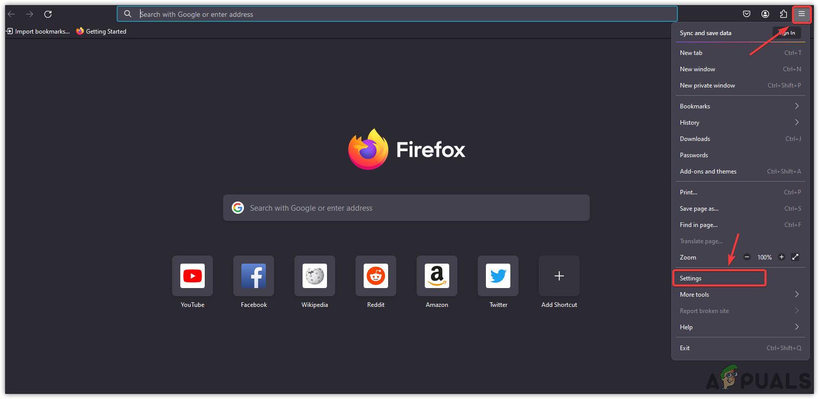- Open Firefox, click the Three bars from the top and select Settings.