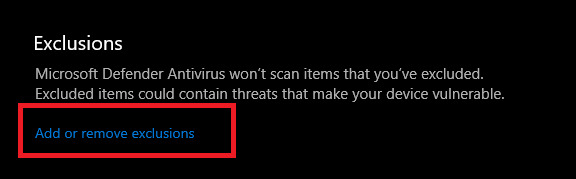- Scroll to Exclusions, then choose Add or Remove Exclusions.