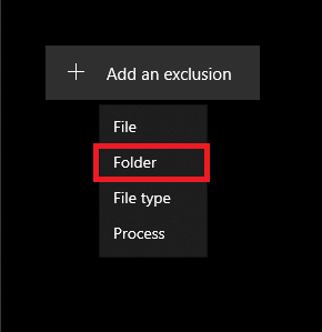 - Select Add an exclusion > Folder.