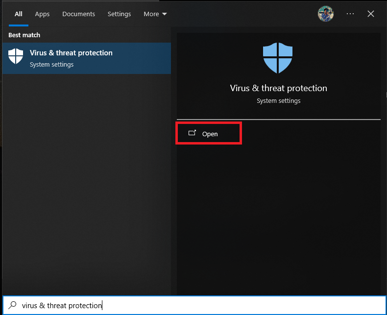 - Type ‘Virus and Threat Protection‘ into the Search Bar and access it.