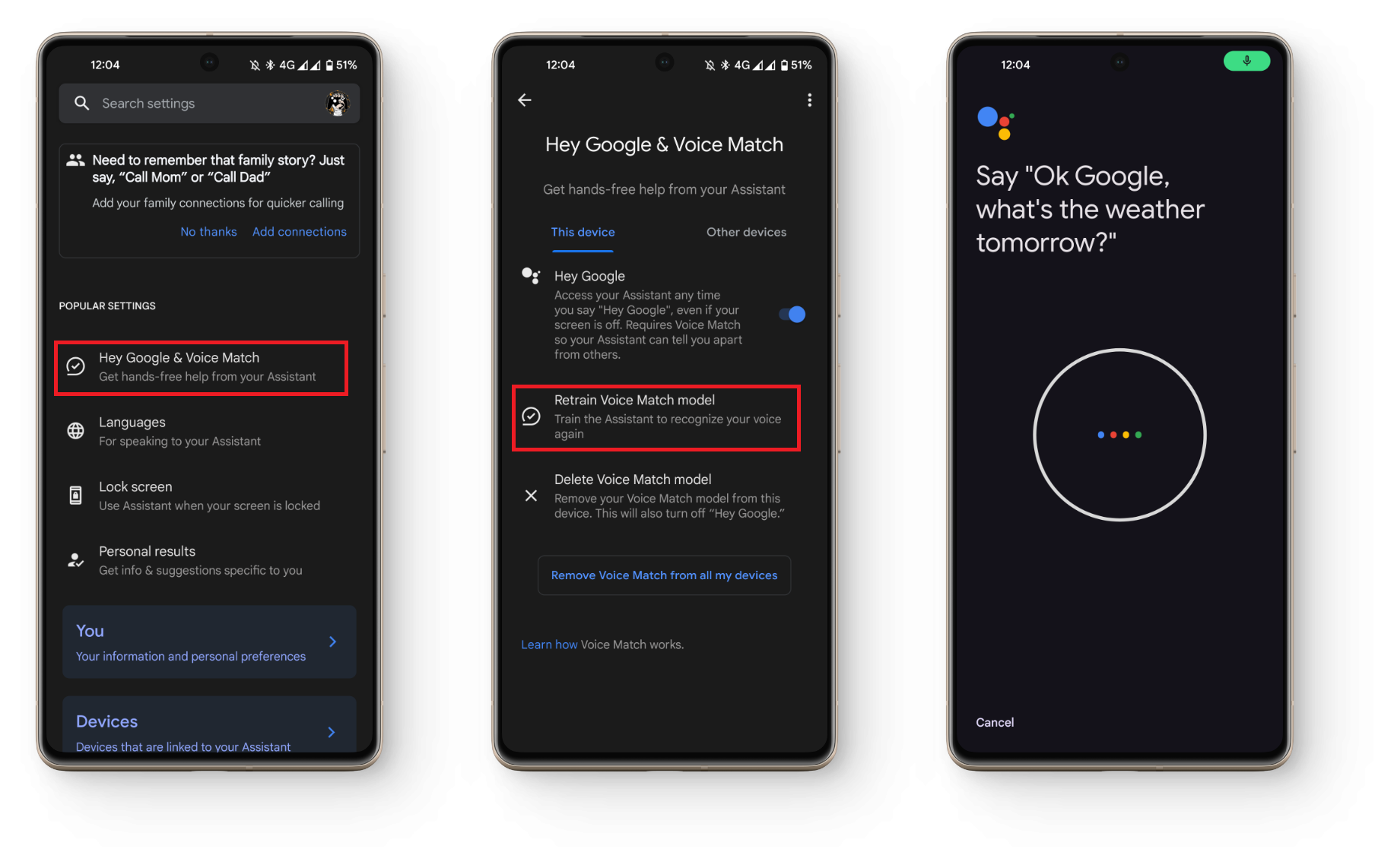- Tap on “Retrain Voice Match model.“