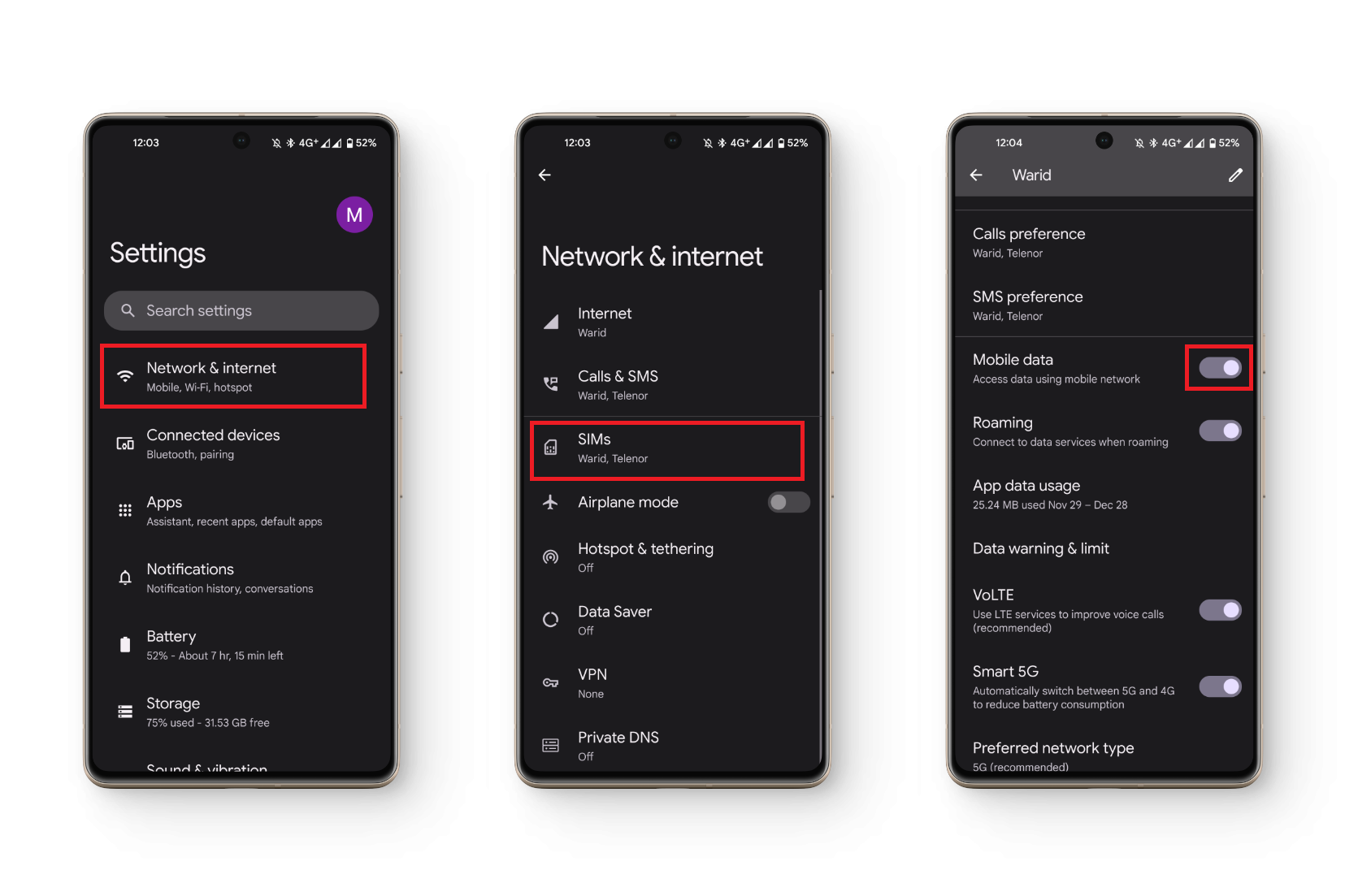 - Now, under Mobile data, toggle on the switch to enable cellular data on your phone.